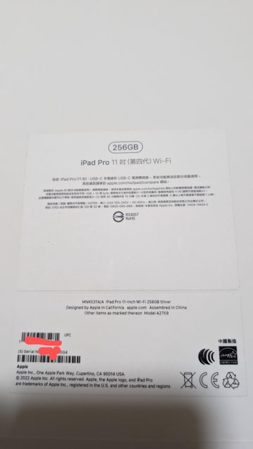 欲售物品:iPad Pro 11吋 WiFi M2晶片 256GB 銀色