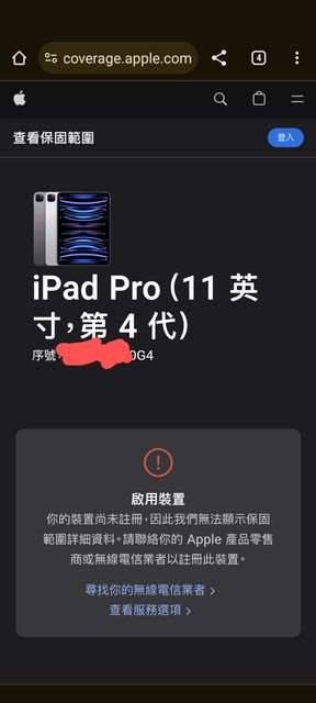 物品狀況:全新未使用,老闆購買時店員有拆封檢查外觀,查詢保固未註冊資訊如附件