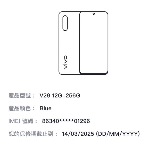 欲售物品:Vivo V29 12+256G 藍