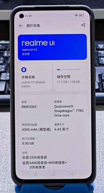 欲售物品:realme gt 大師版8G/128G