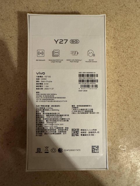 欲售物品:Vivo Y27 6G/128G