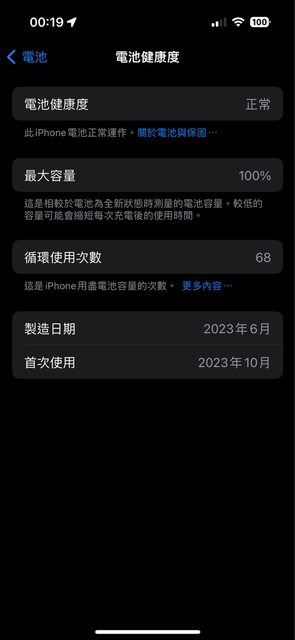 物品狀況:良好無傷,充電線已使用,電池循環次數68次,健康度100。
