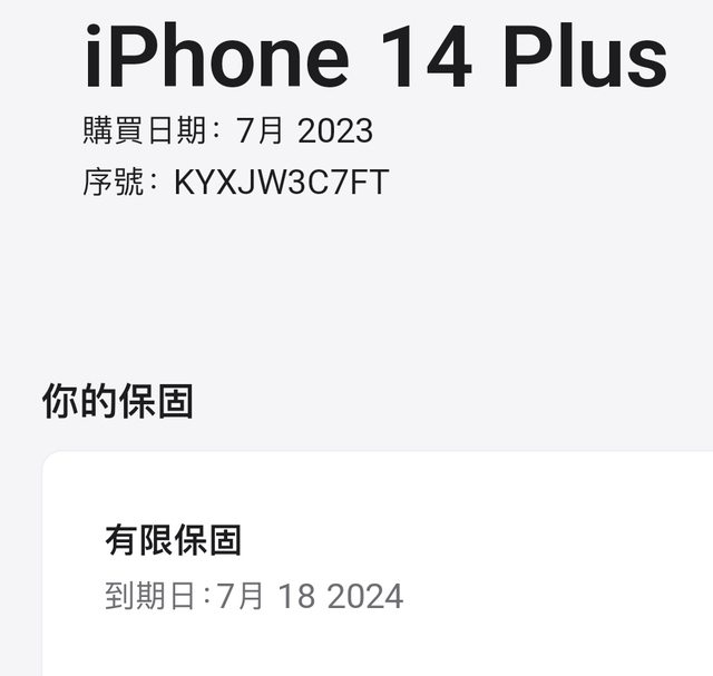 保固日期:去年八月公司送的新機,沒有發票,但還在保固期內(購買日期2023/7、保固