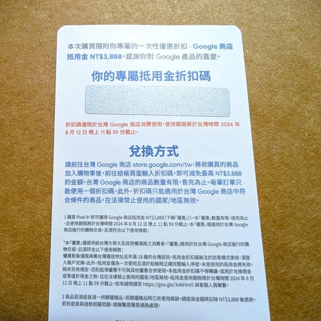 標題[賣/全國/皆可] Google 商店抵用金 3888