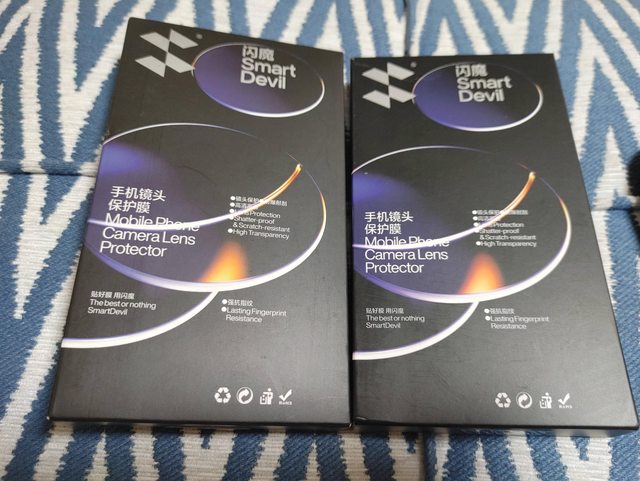 盒裝內含:透明保護套一個,深藍色單顆式全包鏡頭貼兩組