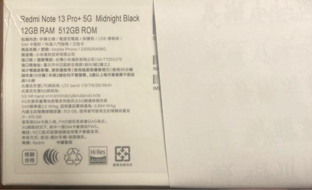 標題[賣/台北/面交] 全新紅米note 13 pro+(12+512)