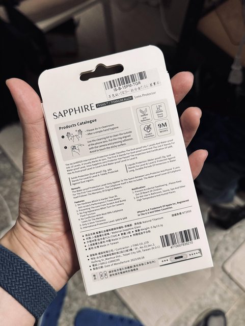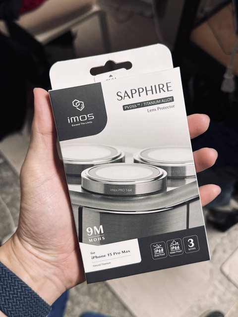 盒裝內含:iMos 藍寶石鏡頭保護貼 iphone 15 pro max (原鈦色 鈦合金材質)
