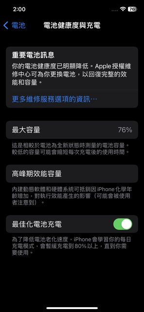 物品狀況:無維修拆解,電池健康度 76%,外觀無傷痕(有全機貼膜),附螢幕上的保護貼