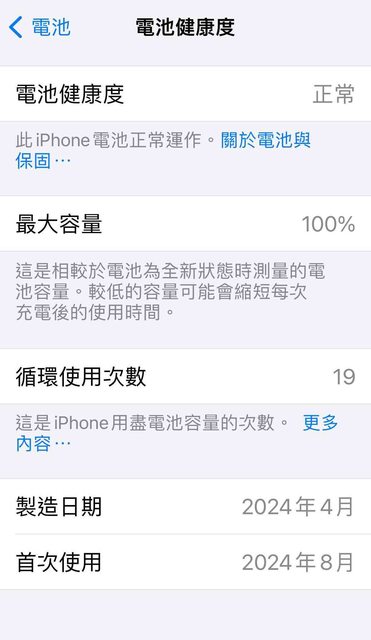 之後整新機回來只用一個月不到,電池健康度100%。