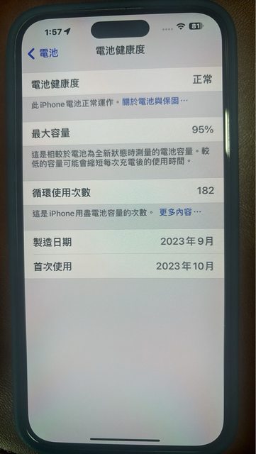 全機配件齊全。機器完整無傷。電池健康度 95%
