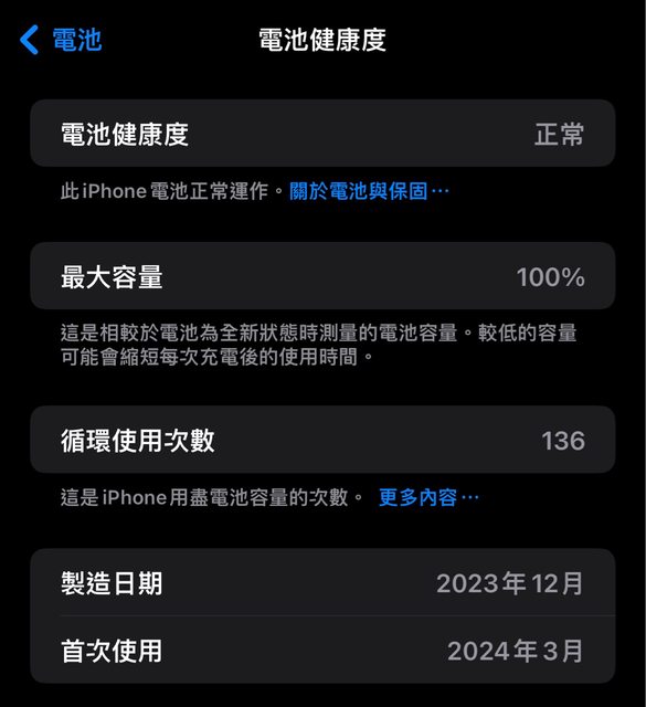 年,電池最大容量100%,循環使用次數136。有興趣來信訊問,會附上保護殼。