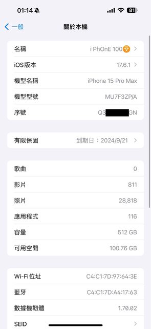 物品狀況:外觀無損,電池健康度97%