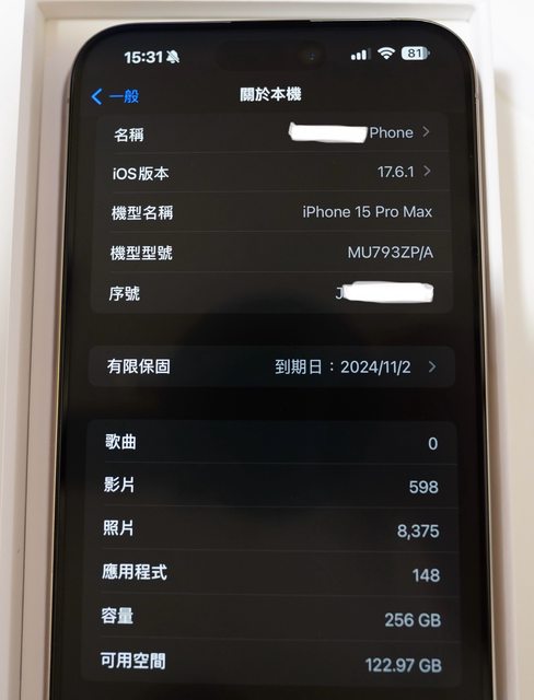 欲售物品:iPhone 15 Pro Max 256G 原色鈦