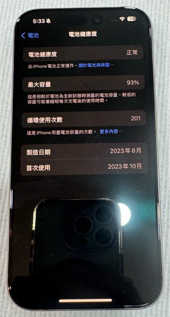 物品狀況:九成新,電池93%,無維修紀錄
