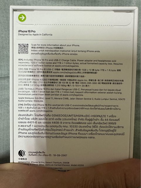 欲售物品:iphone 16 pro 256G 沙漠金