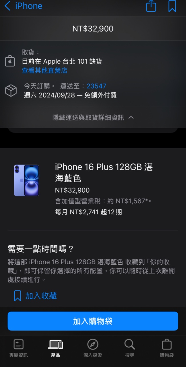 欲售物品:iPhone 16 Plus 128G 湛海藍
