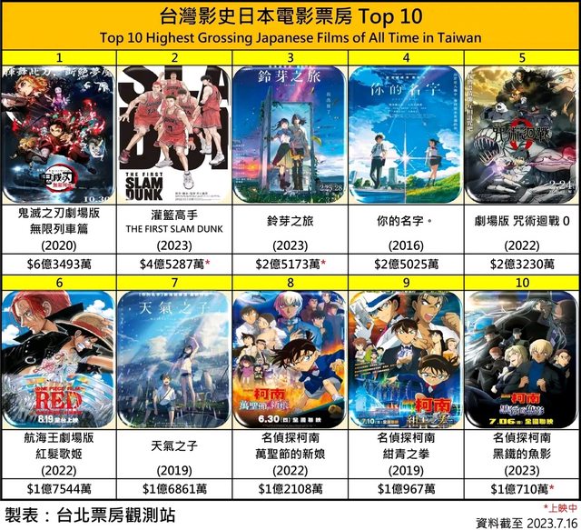 : 【台灣影史日本電影票房 Top 10】(2023/7/17更新)