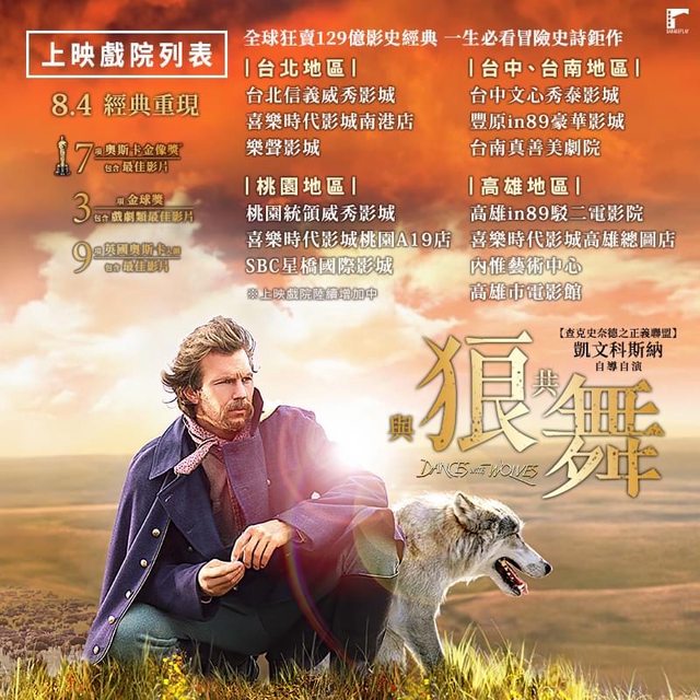 標題[情報] 凱文科斯納《與狼共舞》全台上映戲院