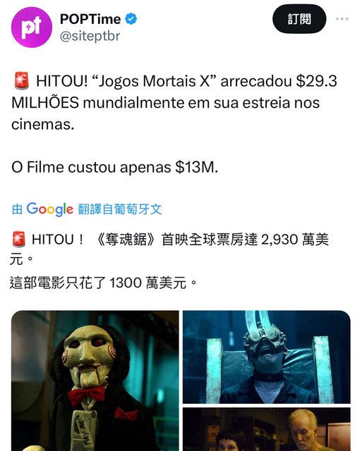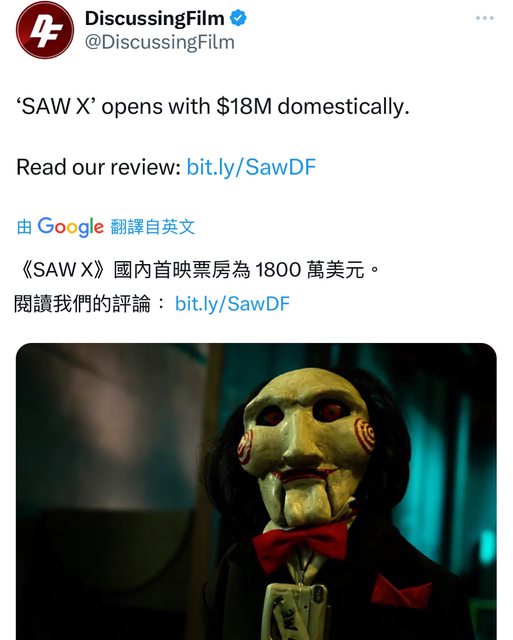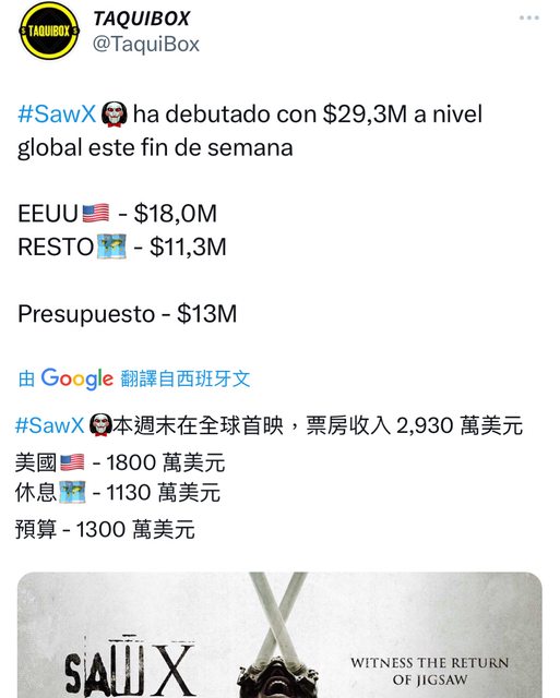 推 nanachi : 奪魂鋸這次全球應該能破億美元10/02 10:25