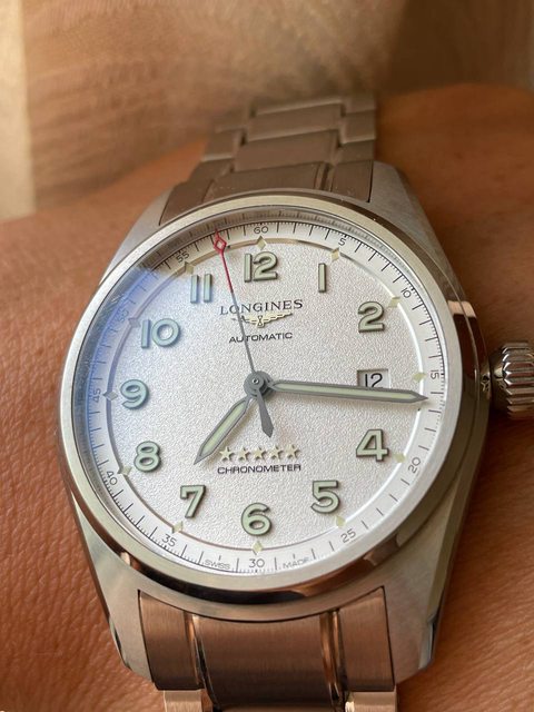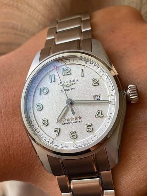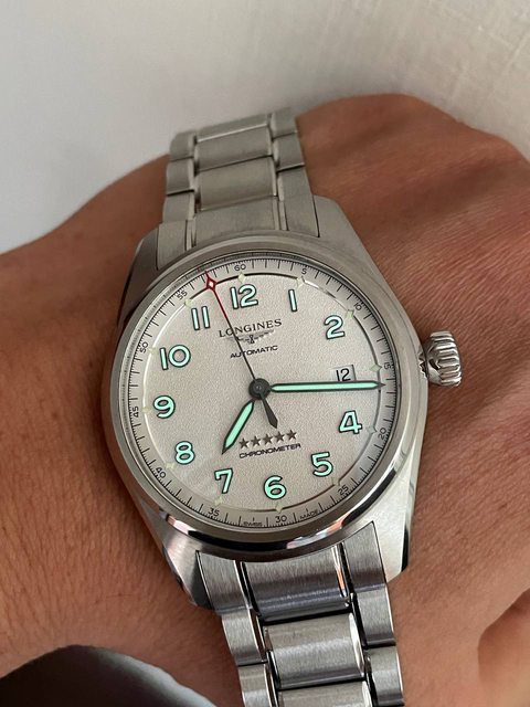 40mm,夜光數字時標,搭配大三針清晰好讀,錶耳略長,錶帶柔軟服貼,蝴蝶扣,