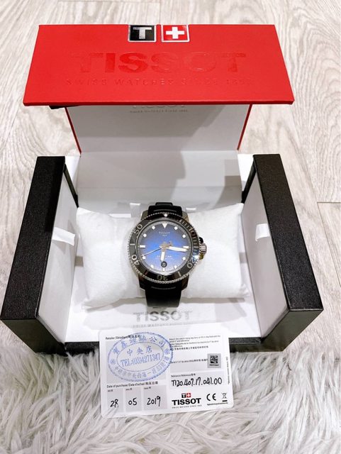 品牌名稱:Tissot 手錶型號:Seastar 1000 機械藍黑 購買年份:2019/05/28(如保卡) 欲售金額:$5000 所在地:桃園中壢 隨附物件:保卡、完整外盒 聯絡方式:站內信 物件描述:購入後極少使用,約9.5新