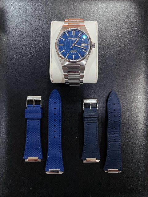 : 另附加向原廠購入之快拆深藍色皮錶帶(原廠售價4,200元)。