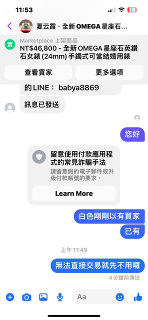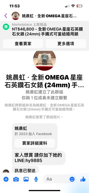 臉書私訊說家人想買錶請加line~加完說要保障請開蝦皮賣場~