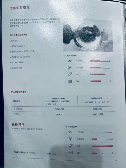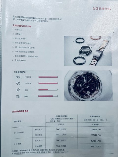 簡單的如更換電池&保養洗油,公開透明可直接報價,桌上也有價目表。
