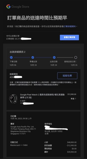 【手錶型號】Google Pixel Watch 2(LTE版)