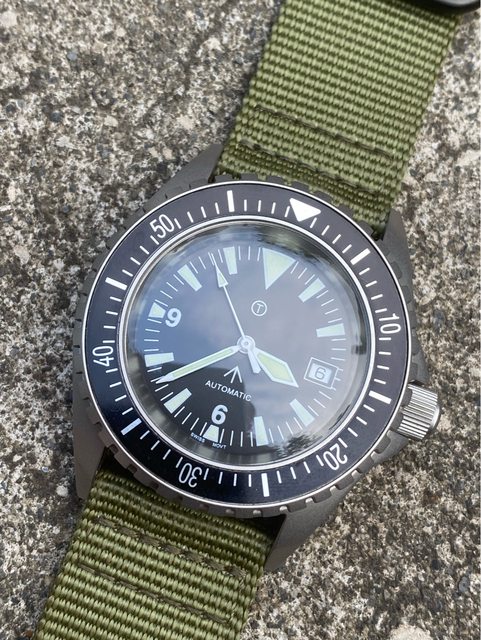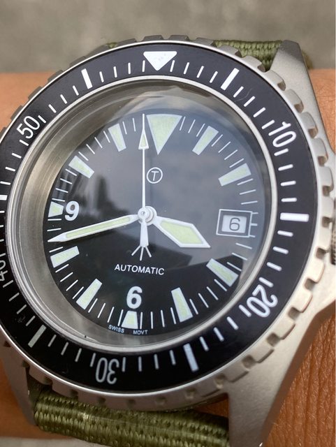 搭載ETA2824機芯 防水200m 旋入式龍頭 圓頂玻璃 錶徑約44mm(不含龍頭) 走時精準,換曆正常 —————————————————- 匯款後店到店,無面交服務