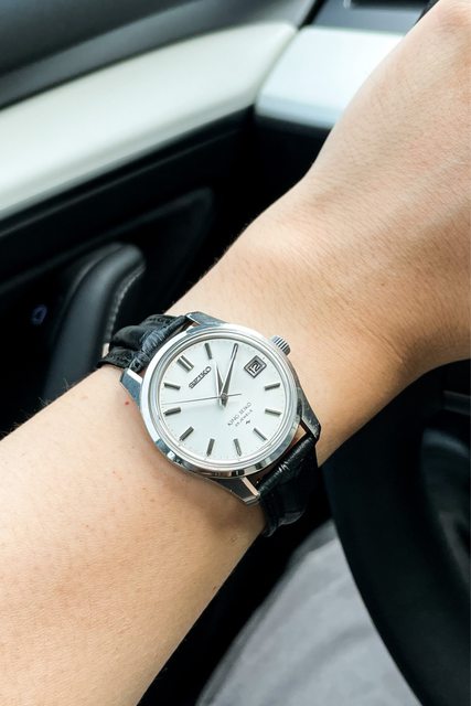 實際拿到錶後,覺得有點像是45KS的斯文版,整隻錶顯得比較秀氣一點,另外,這隻錶可