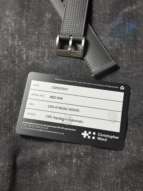 品牌名稱:Christopher Ward 手錶型號:C65 Aquitaine 購買年份:2022 欲售金額:18000 所在地:桃園 隨附物件:保卡、竹盒全套 聯絡方式:站內 物件描述: 9成新,原廠黑膠帶,綠膠帶是另外購買就不附上了
