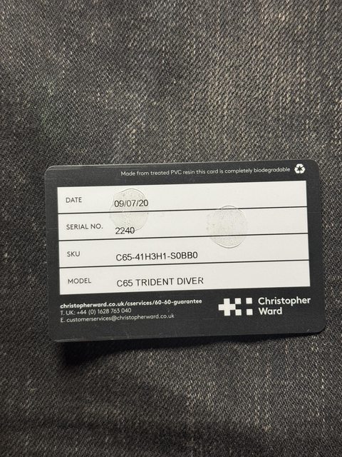 品牌名稱:Christopher Ward (售出) 手錶型號:C65 Trident 購買年份:2020 欲售金額:11500 所在地:桃園 隨附物件:保卡、竹盒全套 聯絡方式:站內 物件描述: 9成新,版上購入,近期入手了風格相近的C65 Bronze故售出