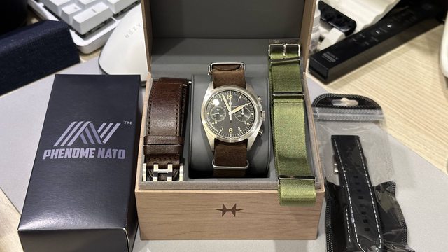 隨附物件:盒單完整,附一條副廠矽膠錶帶,一條皮革NATO帶和一條PHENOME NATO帶