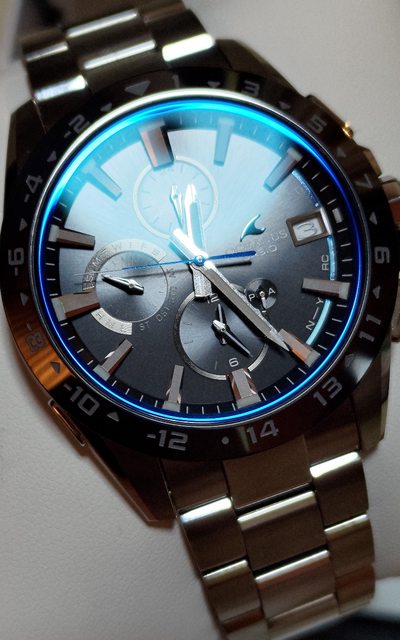 物件總評:日本內銷版,外圈有黑色鍍層特殊處理過,不是一般的鈦合金銀色外圈,錶盤