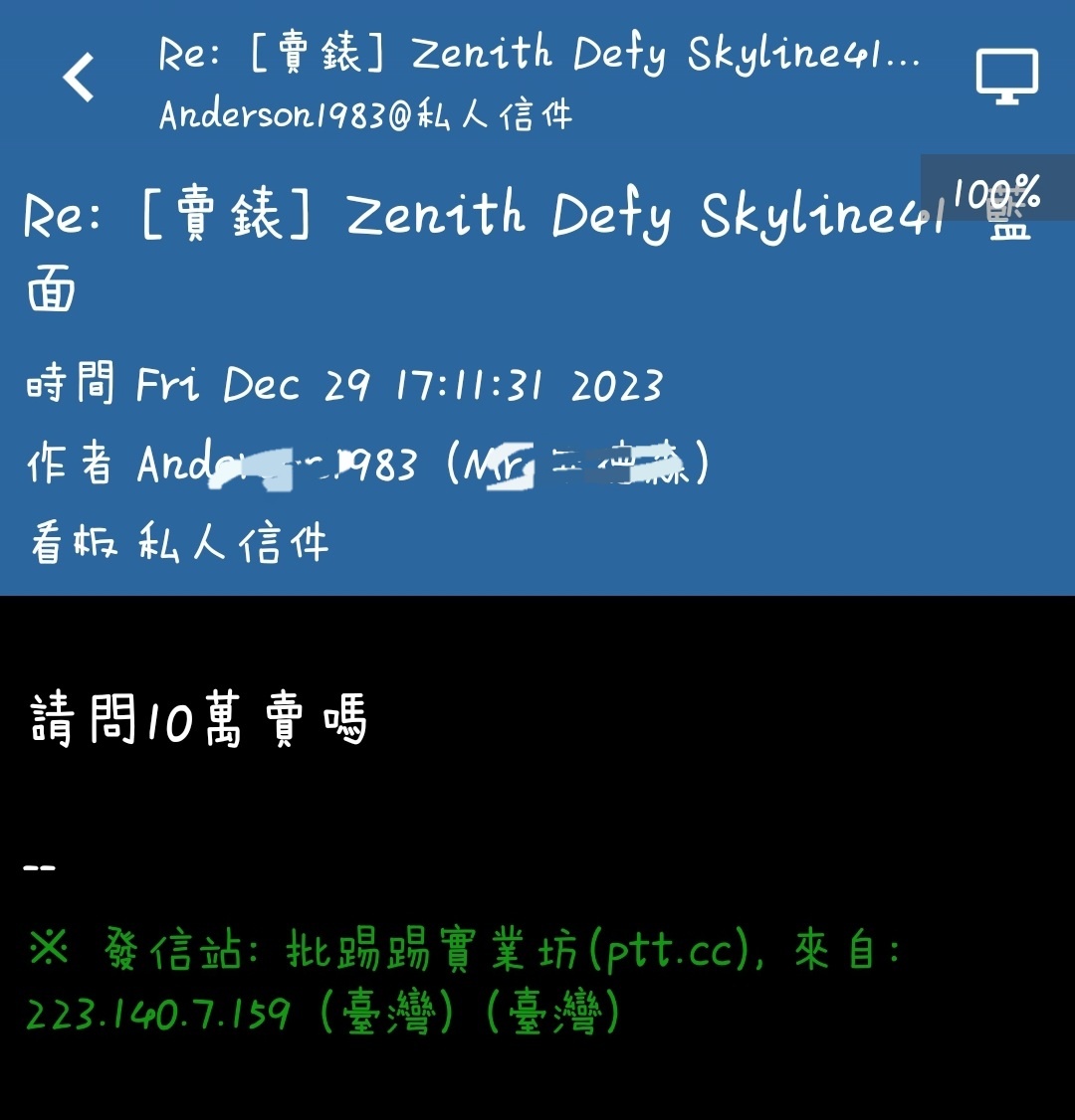 → midone740903: 真力時真賤價 遇到這麼禮貌的朋友 12/29 20:09