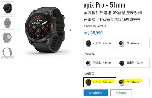 手錶型號:EPIX Pro -51mm黑或白
