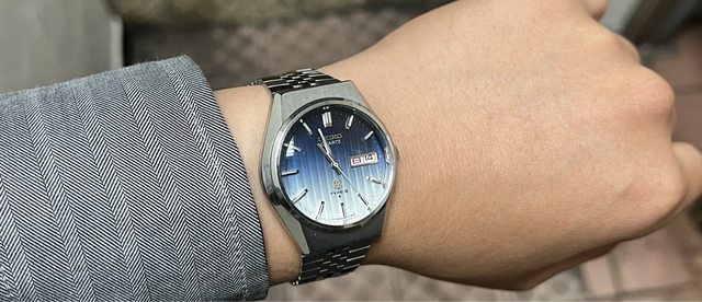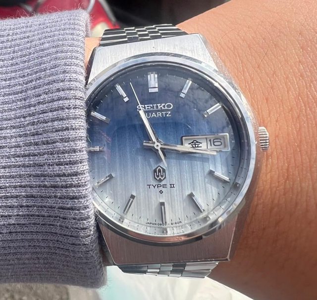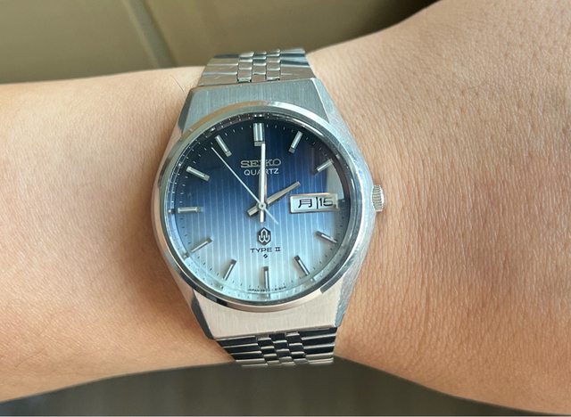 [賣錶] seiko 精工 老石英 特殊面 漸層藍白