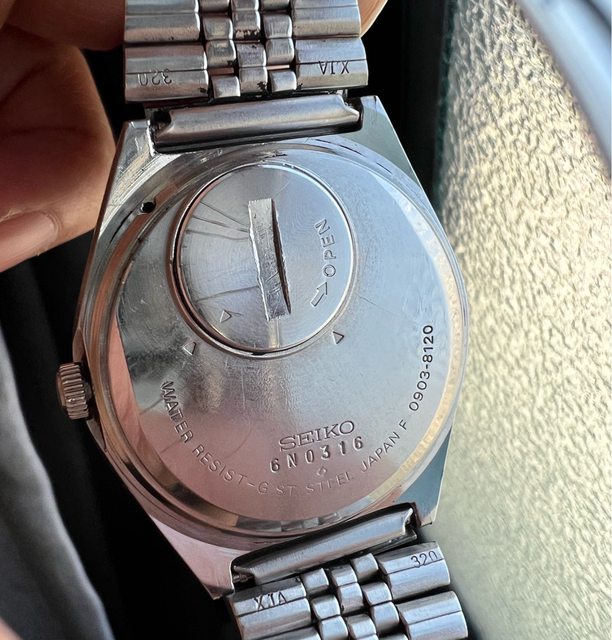 品牌:seiko 精工 售價:3560(含運 機芯:0903-8120石英機芯 錶徑:約36mm 手圍:約17cm 錶況:鏡面更新、分針有氧化痕跡、 走時快調功能正常(但快調星期時會把日期往回帶 附件:單錶 其他:匯款後711店到店或南高雄面交 老錶視為無防水,售出不退, 先匯先得,不保留。