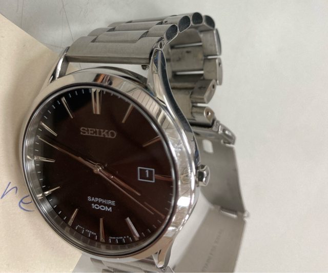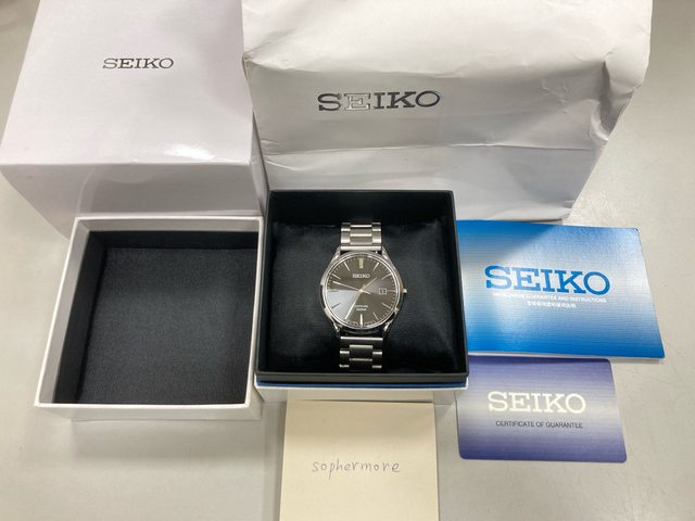 3、 品牌名稱:SEIKO (售出) 手錶型號:ECMR9H 保卡年份:2015 欲售金額:899(使用痕跡如圖) 隨附物件:原盒裝
