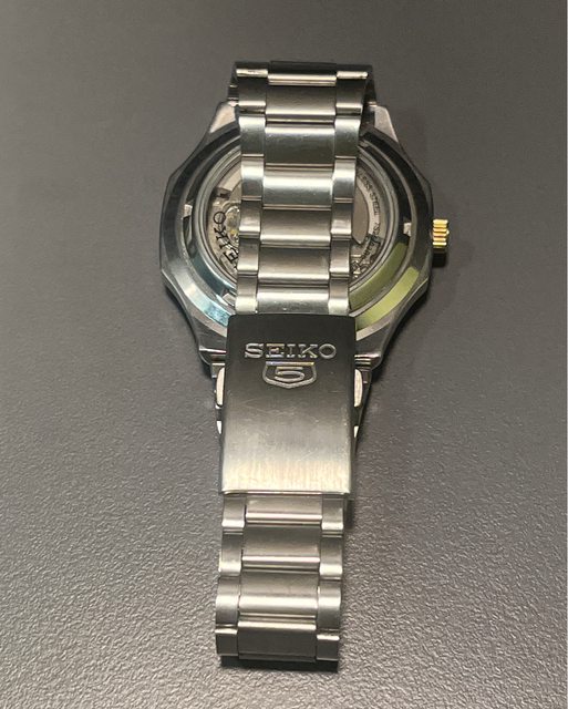 號稱精工PP鸚鵡螺,金色條釘時標,背透機芯