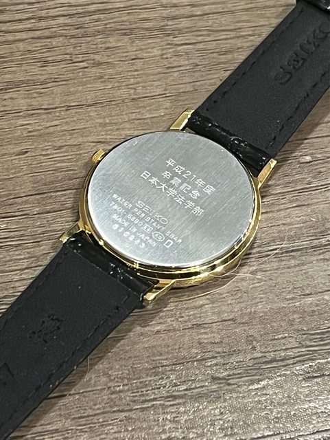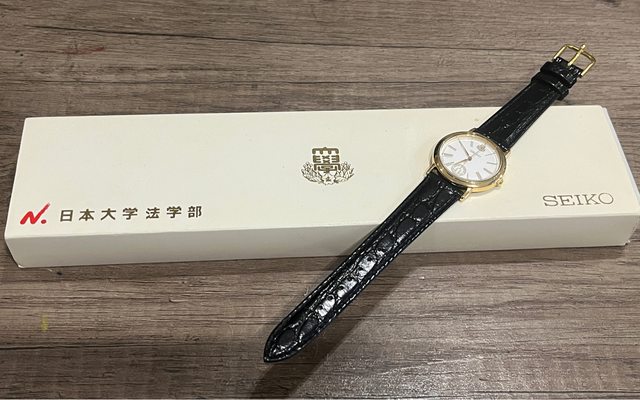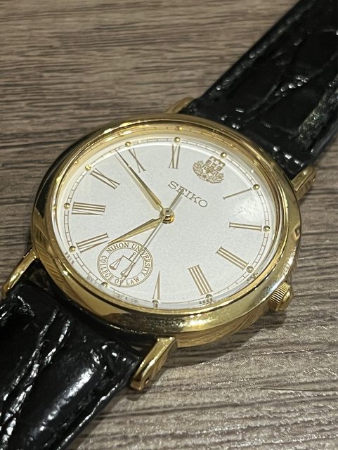 於十二點鐘及六點鐘方向分別有校徽及法學院logo,整隻錶包括皮帶幾乎無使用痕跡,僅