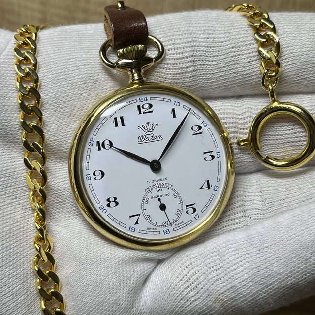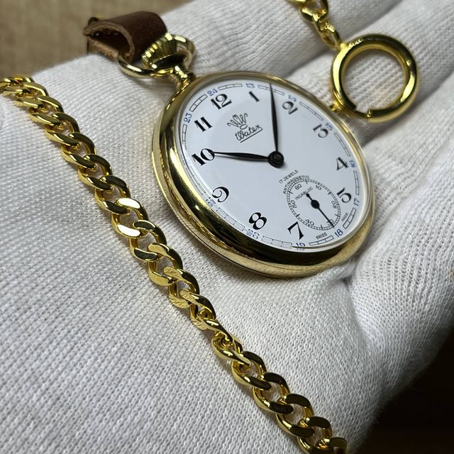 8.Watex金色懷錶 4500$ ETA 6497機芯,直徑40mm 品相佳,使用痕跡少,背蓋膠膜未撕,附懷錶鏈