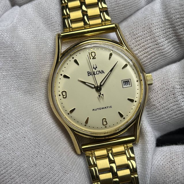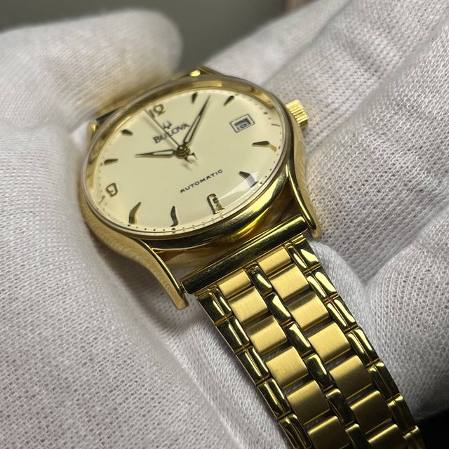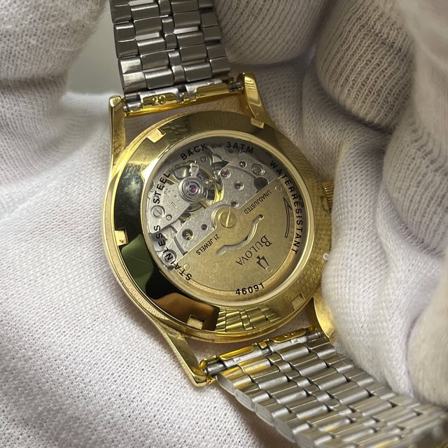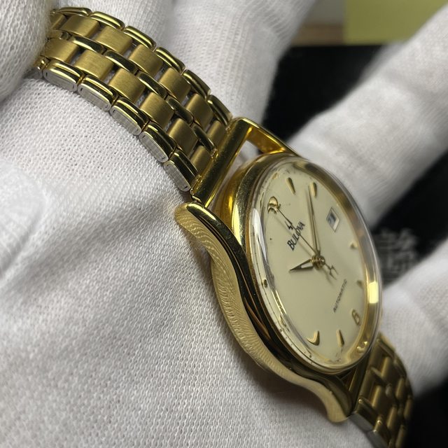 10.BULOVA 46091 金色 自動上鏈機械錶 4900$ 單錶,錶徑含龍頭38,附金色代用錶帶 手錶有使用痕跡等,品相如圖