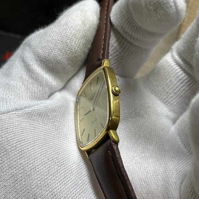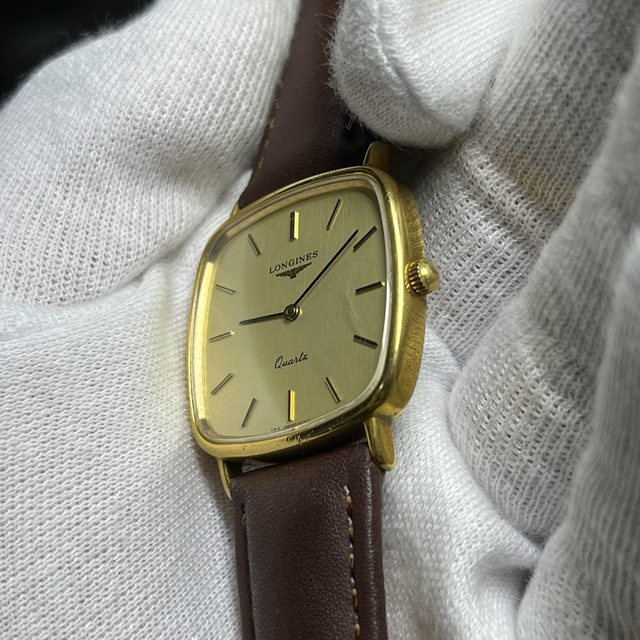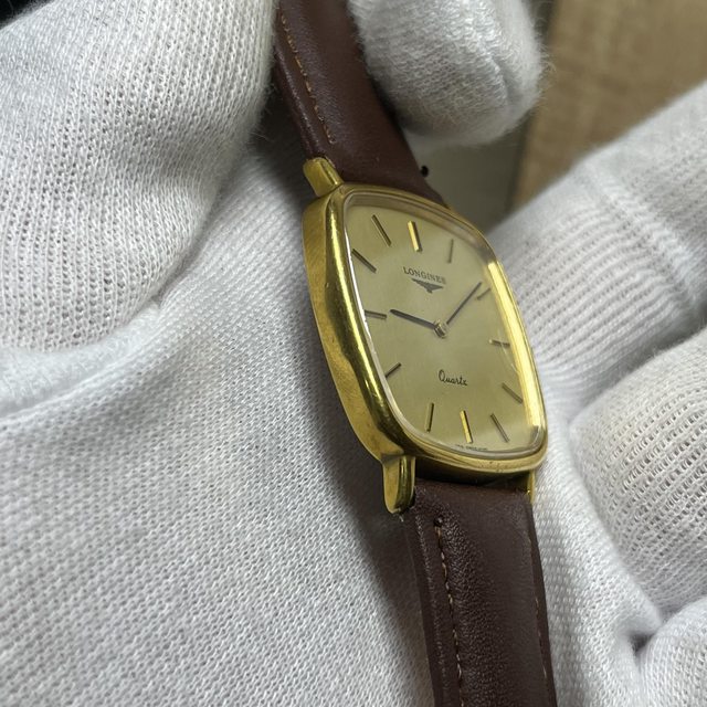 5.浪琴直紋金面二針石英錶 3600$ 錶徑含龍頭32,鍍金,無嚴重掉金 附全新代用皮錶帶,另附原廠錶扣,有使用痕跡 手錶有使用痕跡等,品相如圖