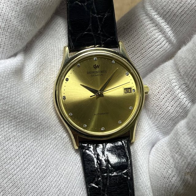 6.Raymond Weil 自動上鍊機械錶 4900$ ETA2892機芯 錶徑含龍頭34,鍍金10微米,無嚴重掉金 原廠皮錶帶有使用痕跡 手錶有使用痕跡等,品相如圖