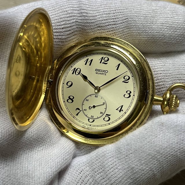 9.SEIKO石英懷錶 500$ 目前不行走,需換電池或維修 錶況不明,現狀出售 背蓋上有一凹痕,不影響鉸鏈開合