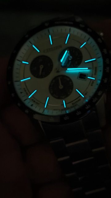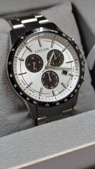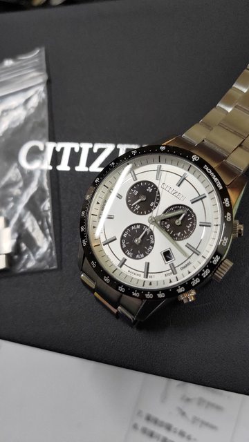 來一支Citizen光動能熊貓萬年曆,白銀色的放射面加上三個計時圈,出門絕對不會撞錶