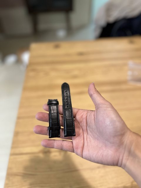 了藏青藍的皮革錶帶,配上藍鋼指針感覺更有一體性。除了原廠黑色鱷魚皮和錶扣外,還會