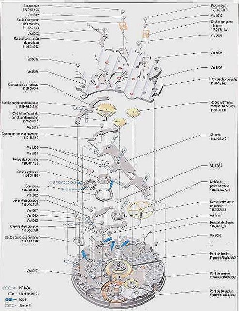 機芯包含303個獨立部件,製造過程需要3520個工時,可想而知價格不菲,這也是為何這機芯一直用於高端製錶廠的原因。這個集成導柱齒輪控制與計時部分垂直離合的裝置備受玩家的青睞。